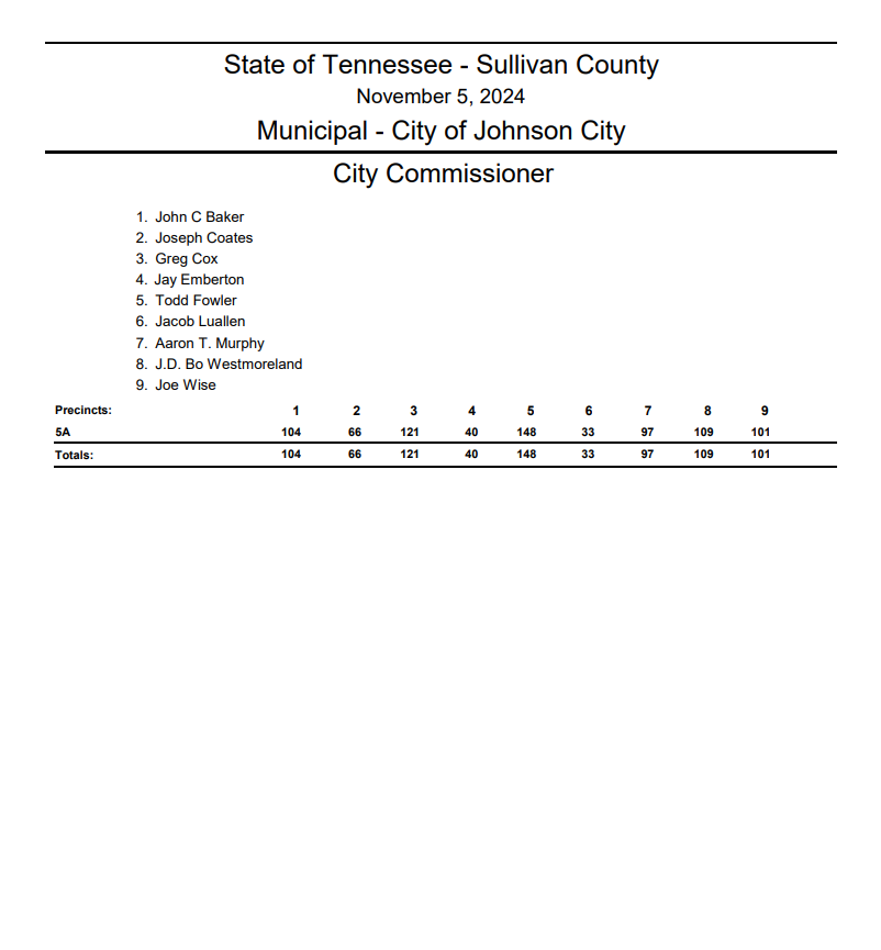 November 5, 2024 – General Election – Sullivan County – City Commissioner Report